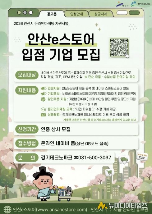 이민근 안산시장은 “안산e스토어가 관내 중소기업의 우수 제품을 널리 알리고 온라인 판로를 넓히는 실질적인 지원 창구가 되길 바란다”며 “기업에는 성장 기회를, 지역경제에는 활력을 더할 수 있도록 지속적으로 지원하겠다”고 말했다.