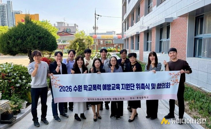 수원교육지원청은 4월 22일, 23일 양일간‘2026 학교폭력예방 지원단 및 학교폭력 사안처리 현장지원단 위촉식 및 협의회’를 개최했다. 총 23명의 지원단이 위촉장을 받고, 학교폭력 예방 및 학교폭력 사안 처리 대응 체계 구축을 위해 머리를 맞댔다.