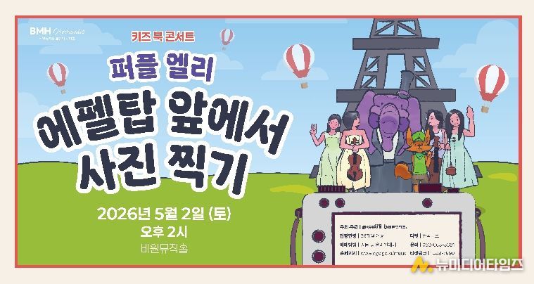 비원뮤직홀에서는 어린이날을 기념하기 위해 아이와 가족이 함께 감상할 수 있는 키즈 북 콘서트 ‘퍼플 엘리 – 에펠탑 앞에서 사진 찍기’를 오는 5월 2일 개최한다.