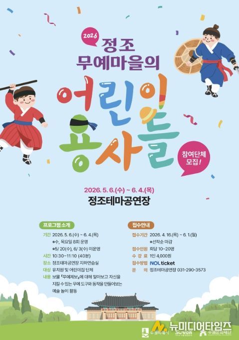 수원문화재단 정조테마공연장의 대표 예술교육 프로그램 '정조무예마을의 어린이 용사들'의 상반기 교육이 접수 마감되며 큰 호응을 얻고 있다.