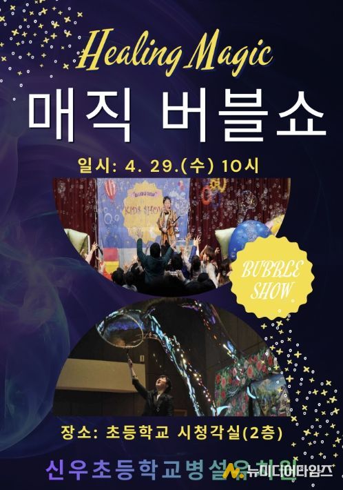 신우초등학교병설유치원은 4월 29일 교내 시청각실에서 ‘힐링 매직버블쇼’ 공연을 개최했다고 밝혔다. 이번 공연은 유아들이 직접 참여하며 즐길 수 있는 체험형 프로그램으로 마련됐다.