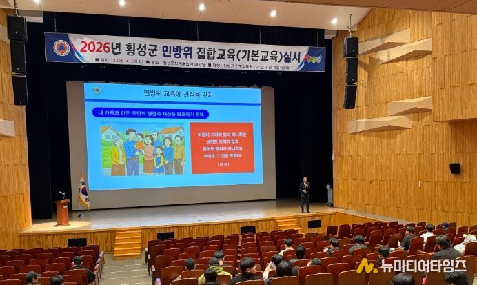 횡성군이 민방위 대원의 재난 대응 역량 강화를 위해 4월 29일 횡성문화예술회관 대강당에서 ‘2026년 민방위 집합교육’을 실시한다고 밝혔다.