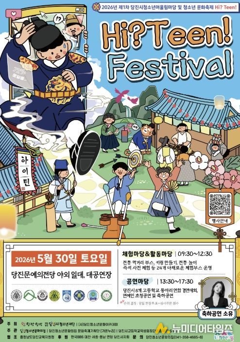 5월 30일 토요일, 당진문예의전당에서 2026년 제1차 당진시청소년어울림마당 및 청소년 문화축제 [Hi? Teen!]이 개최된다. 이번 행사는 ‘전통’을 중심으로 영화 ‘왕과 사는 남자’를 모티브로 기획됐으며, 현대와 조선을 넘나드는 색다른 분위기 속에서 청소년이 직접 기획·운영하는 참여형 축제로 마련됐다.