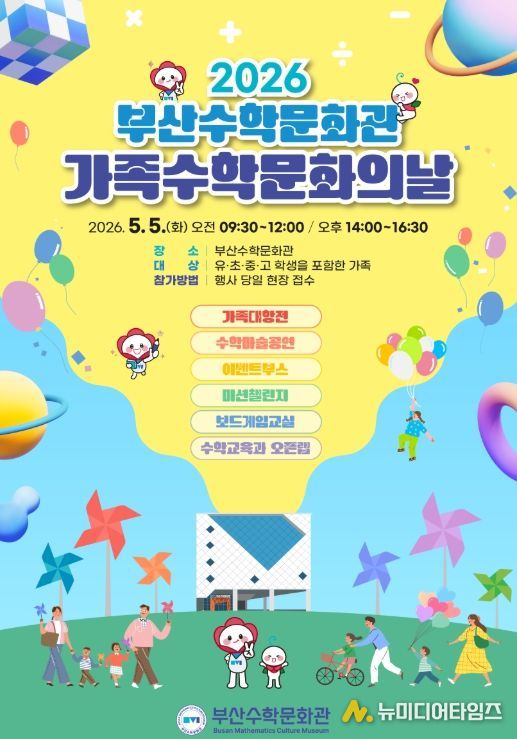 부산광역시교육청창의융합교육원은 가정의 달을 맞아 오는 오는 5월 5일 부산수학문화관에서 유·초·중·고 학생과 가족을 대상으로 ‘가족 수학 문화의 날’ 행사를 개최한다.
