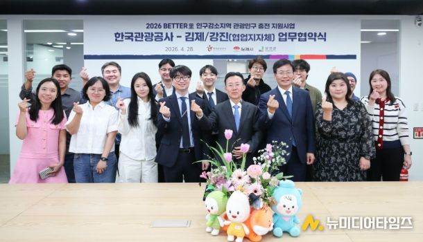 강진군은 지난 28일 한국관광공사 서울센터에서 한국관광공사 및 김제시와 총 14개 참여기업의 성공적인 실증사업 추진을 위한 3자 간 업무협약(MOU)을 체결했다.