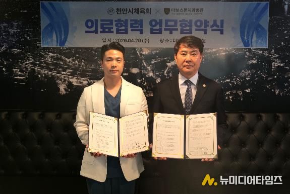 천안시체육회와 더보스턴치과병원은 지난 29일 더보스턴치과병원에서 체육인의 건강 증진과 복지 향상을 위한 업무협약을 체결했다.