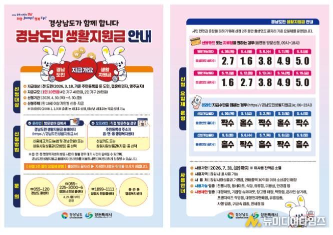 창원특례시는 고유가·고물가 등으로 가중된 민생 부담을 완화하기 위해 시행되는 ‘경남도민 생활지원금’ 지급을 오는 4월 30일부터 본격적으로 시작한다고 밝혔다.