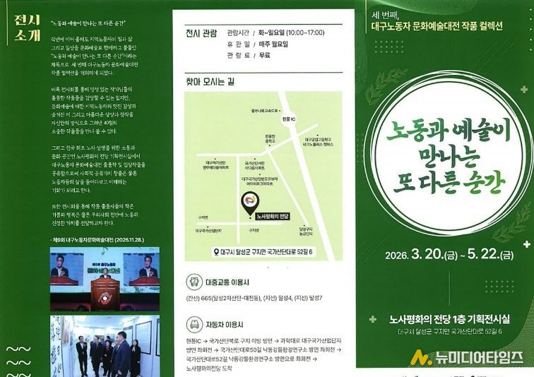 이번 전시는 대구시가 주최하고 한국노총 대구지역본부가 주관하며, 지난해 11월 열린 ‘제9회 대구노동자 문화예술대전’ 수상작과 출품작 중 엄선된 40여 점의 작품을 시민들에게 선보인다.