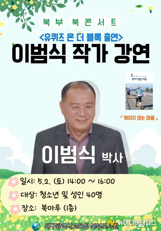 대구시교육청 산하 북부도서관은 오는 5월 2일 '유퀴즈 온더 블록'에 출연한 왼발박사 이범식을 초청해 청소년과 성인을 대상으로'이범식 작가: 꺾이지 않는 힘'을 운영한다.