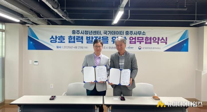 충주시 청년센터는 4월 29일 충주시 청년센터에서 국가데이터처 충주사무소와 청년 데이터 역량 강화를 위한 업무협약(MOU)을 체결했다.