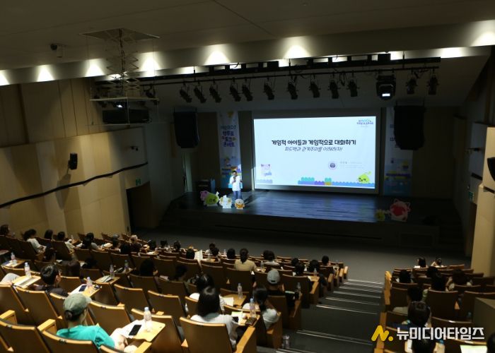 넥슨 헬로메이플 담당자 강연으로 진행된‘우리 아이 디지털 놀이터, 헬로메이플’ 순서에서는 헬로메이플 플랫폼을 활용한 코딩교육과 자녀가 게임 세상에서 건강하게 성장할 수 있는 방법을 안내했다.