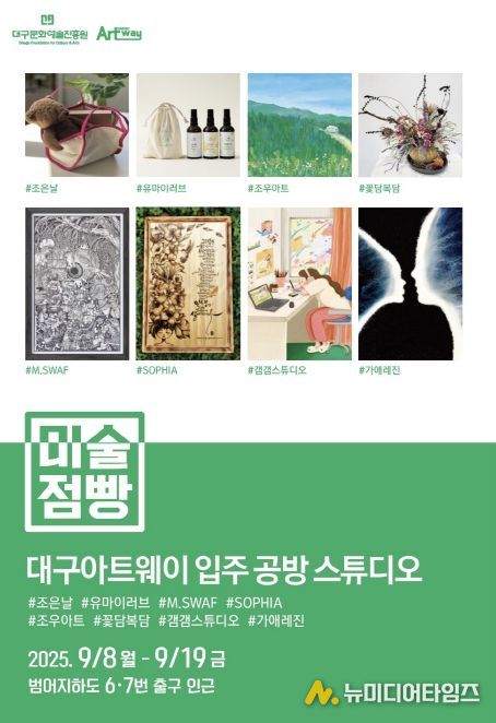 이번 6차 미술점빵 운영은 2025년도 입주예술인(단체) 공모를 통해 선정돼 현재 대구아트웨이 내 입주 중인 8개 공방 스튜디오와 함께 한다.
