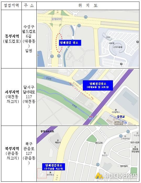 대구시는 점검 일정과 내용을 업체에 사전 통보해 자율 시정을 유도하고, 미수검·부적격 차량에 대해서는 운행정지 등 행정처분을 통해 위험 요소를 사전에 차단할 방침이다.