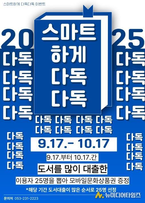행사 기간 중 가장 많은 책을 빌린 이용자 25명에게는 1만 원 상당의 모바일 문화상품권이 증정된다.