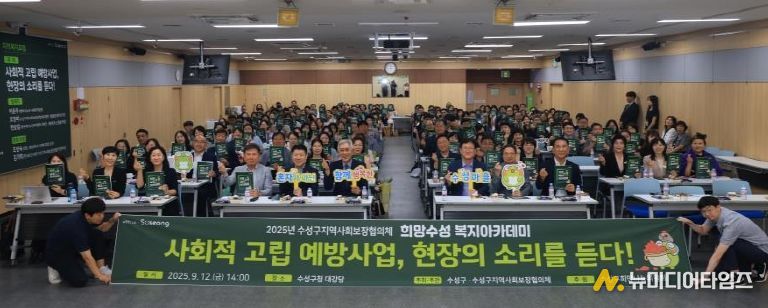 대구 수성구는 지난 12일 수성구청 대강당에서 협의체 위원, 사회복지기관 및 시설 종사자, 지역 주민 등 200여 명이 참여한 가운데 ‘사회적 고립 예방사업, 현장의 소리를 듣다!’를 주제로 수성구지역사회보장협의체 2025년 '희망수성 복지아카데미'를 성황리에 개최했다.