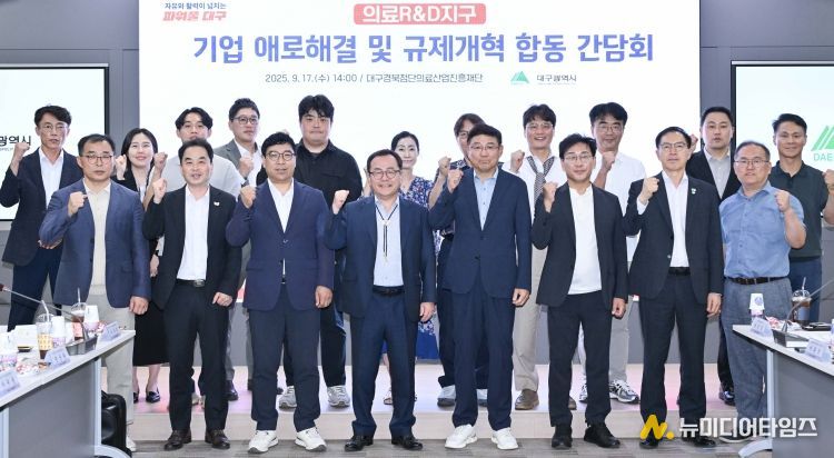 대구광역시는 9월 17일 오후 2시, 대구경북첨단의료산업진흥재단에서 홍성주 대구시 경제부시장 주재로 의료R·D지구 내 기업과 유관기관이 함께하는 ‘제3차 기업 애로해결 및 규제개혁 합동간담회’를 개최했다.
