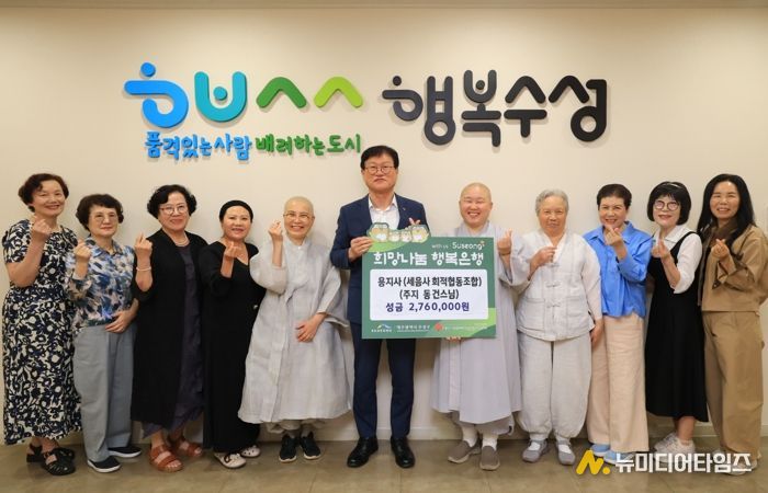 대구 수성구는 지난 19일 용지사(세음사회적협동조합) 주지 동건스님과 신도들이 재난 피해 주민들을 위해 써달라며 성금 276만 원을 전달했다고 밝혔다.