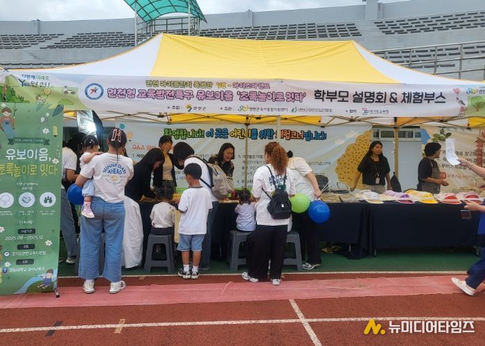 경기도연천교육지원청은 9월 19일 10:00~15:00, 연천종합운동장에서 열린 YC아이조아랜드와 연계한'연천형 유보이음 초록놀이 한마당'을 성대히 개최했다. 이번 행사는 연천군육아종합지원센터와 연천군 어린이집연합회가 주관하고, 유보이음 공동교육과정 위탁대학인 경동대학교가 함께하여 학부모 대상 설명회 및 체험활동으로 진행됐다.