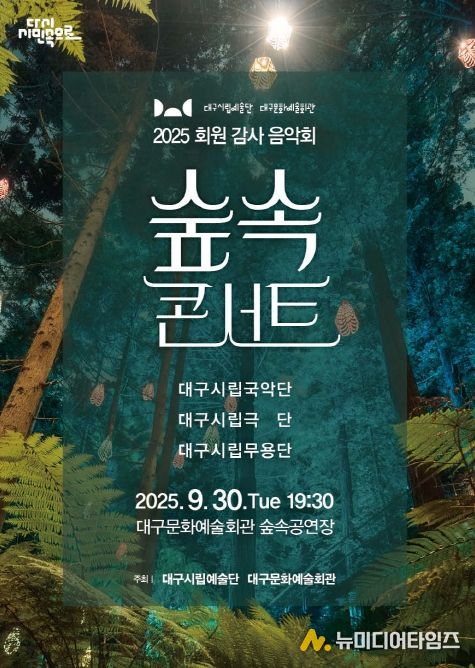 대구문화예술회관·대구시립예술단 2025 회원 감사 음악회 ‘숲속 콘서트’ 공연이 9월 30일 저녁 7시 30분 대구문화예술회관 숲속 공연장에서 펼쳐진다.
