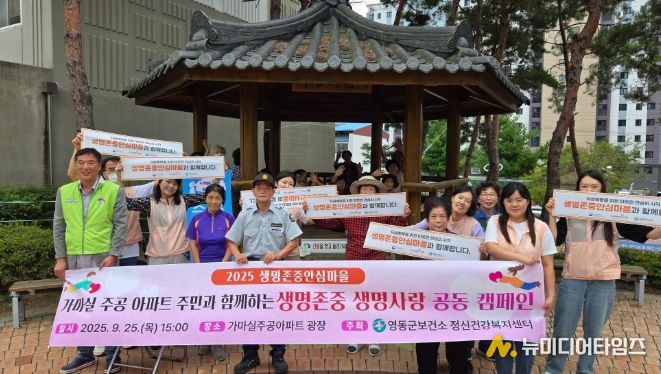 충북 영동군정신건강복지센터는 25일 오후 가마실 주공아파트 광장에서 2025 생명존중안심마을 가마실 주공아파트 입주민과 함께 생명사랑 생명존중 공동 캠페인을 실시했다.
