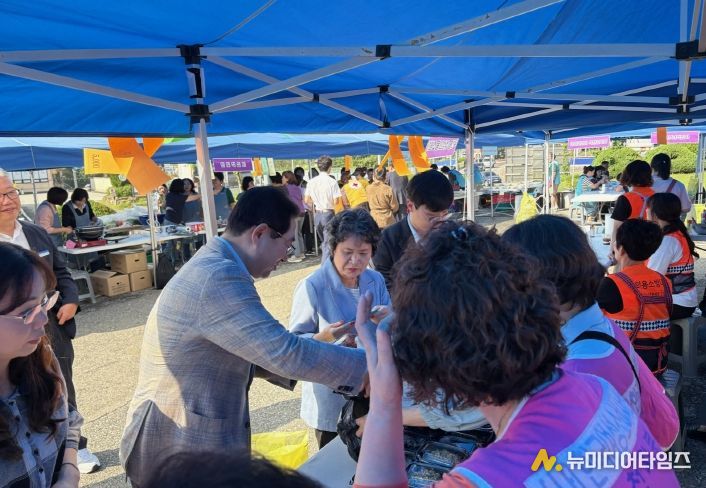 이날 바자회에서는 ▶ 찹쌀, 표고버섯 등 농특산물 ▶ 화장지, 칫솔 등 생활용품 ▶ 참기름, 미역, 만두 등 식품류를 저렴한 가격에 판매했으며 ▶ 잔치국수, 김밥 등 먹거리 장터도 운영했다.
