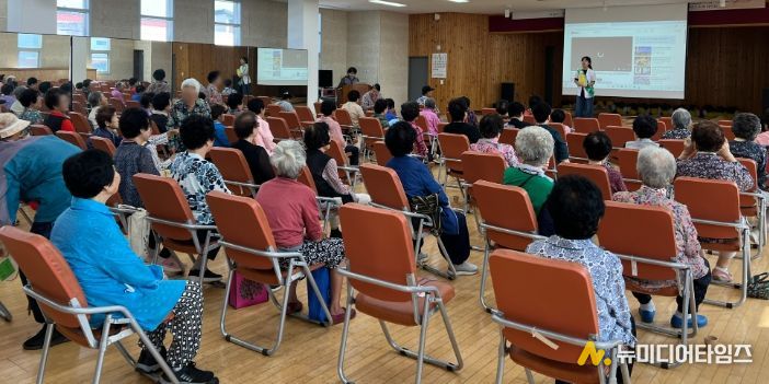 청주시 상당보건소는 26일 문의면복지회관에서 꽃바람청춘대학 어르신 120명을 대상으로 심뇌혈관질환 예방 교육과 자기혈관 숫자알기 레드서클 홍보 캠페인을 실시했다.