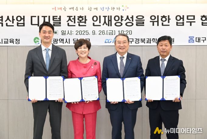 대구 달성군은 9월 26일 대구시교육청에서 대구시교육청, 대구경북과학기술원, 대구공업고등학교와 함께 지역산업 디지털 전환 인재양성 선도사업 운영을 위한 4자 업무협약을 체결했다고 밝혔다.
