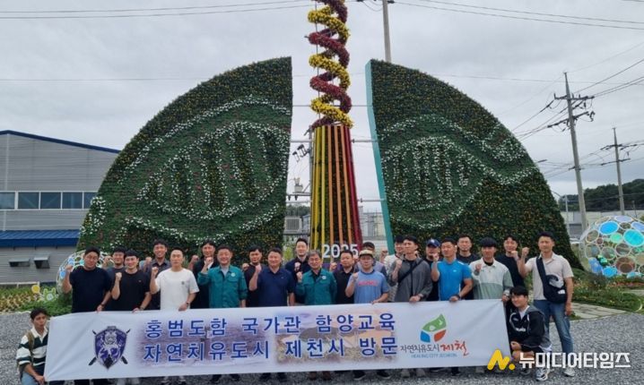 시는 2025제천국제한방천연물산업엑스포 행사장을 방문한 홍범도함 승조원들을 맞아 환영식을 열었다.