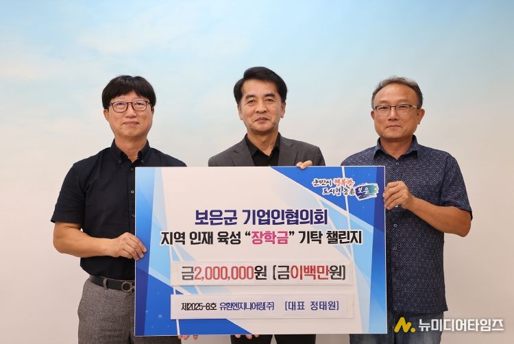 정태원 대표는 “보은군기업인협의회에서 추진하고 있는 기탁 챌린지에 첫 기탁자로 참여할 수 있어 매우 뜻깊게 생각한다”며 “이번 장학금이 어려운 여건 속에서도 학업에 매진하는 학생들에게 작은 보탬이 되길 바란다”고 말했다.