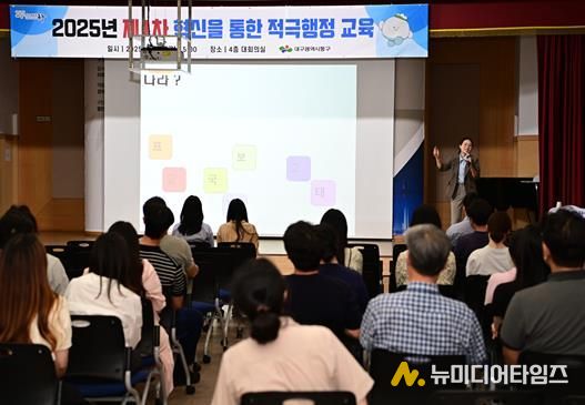 대구 동구청은 지난 26일, 동구 소속 공무원과 (재)동구문화재단 직원 포함 80여 명을 대상으로 ‘제1차 혁신을 통한 적극행정 교육’을 실시했다.
