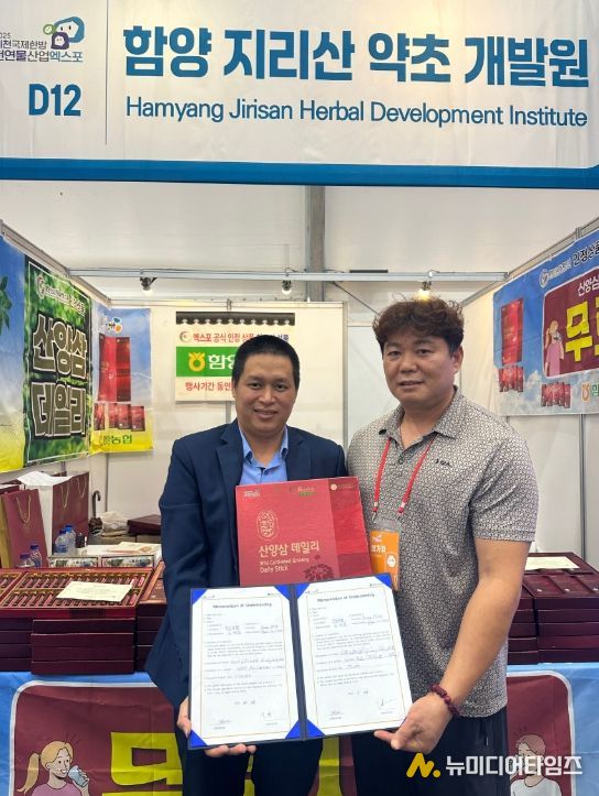 경남 함양농협에서 운영하는 지리산약초개발원이 2025제천국제한방천연물산업엑스포에서 해외 기업과 연달아 수출협약을 체결하며 주목받고 있다.