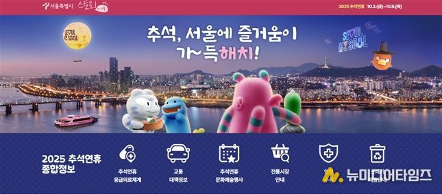 서울시가 7일간의 추석 연휴 기간 동안 시민들이 안전하고 쾌적하게 지낼 수 있도록 다양한 정보를 한곳에 모은 ‘2025 추석연휴 종합정보’서비스를 서울시 대표 누리집을 통해 제공한다.