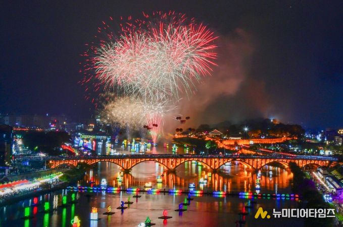 이날 개막식에는 남강과 진주성을 밝힌 7만여 유등과 함께 ‘3D 홀로그램 유등’, ‘수상 불꽃놀이’, ‘드론 라이트쇼’가 어우러지며 환상적인 가을밤을 연출했다.