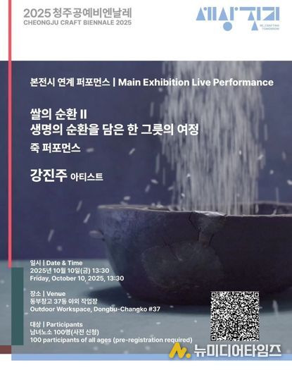 도예를 출발점으로 조각·설치·미디어 등 다채로운 장르를 넘나드는 이헌정과 함께하는 아티스트 토크는 오는 17일 오후 2시에 문화제조창 동부창고 38동에서 진행한다. 2025 청주공예비엔날레 준비한 마지막 국제공예워크숍의 자세한 일정 등은 홍보물을 참고하면 된다.