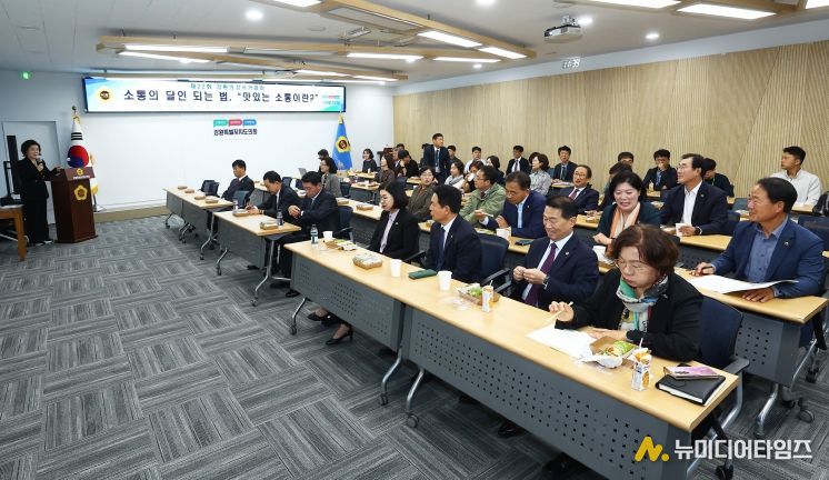 현직 도의원 49명 전원과 강원특별자치도민, 의회사무처 직원을 대상으로 실시하는 이번 교육에서는 백현주 연사(방송인)를 초청해 ‘소통의 달인이 되는 법, 맛있는 소통이란?’을 주제로 강의를 개최했다.