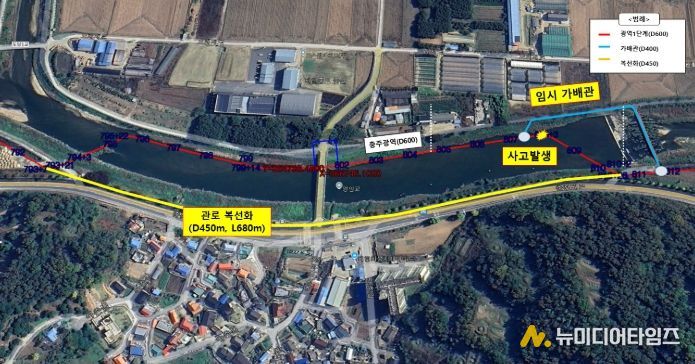 한국수자원공사는 기존 누수 관로에 대한 보강 설계를 마친 상태이며, 10월 중 가배관 철거 등 복구 작업을 완료할 예정이다.