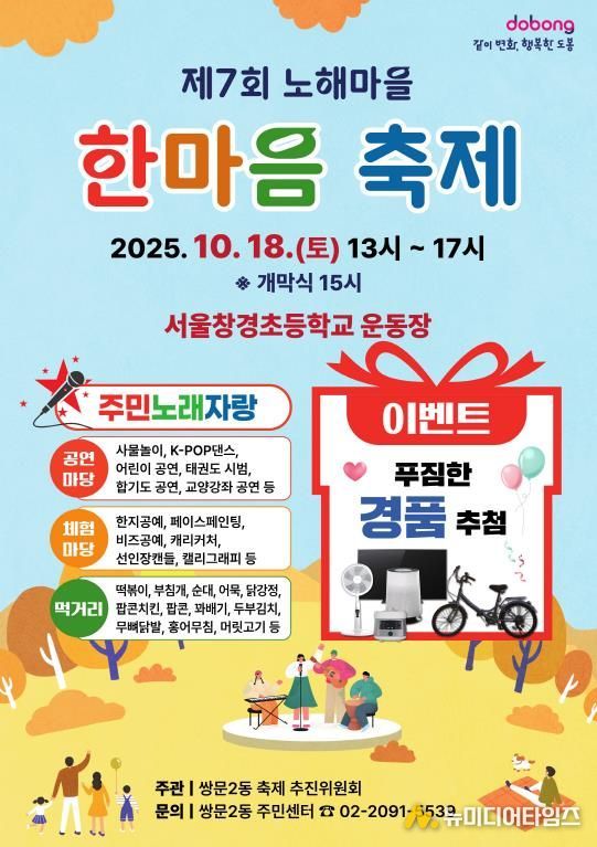 서울 도봉구 쌍문2동이 10월 18일 오후 1시 서울창경초등학교에서 ‘제7회 노해마을 한마음 축제’를 개최한다.