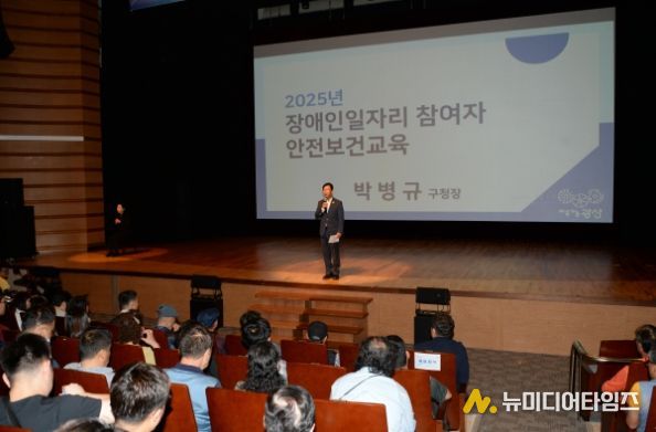 광주 광산구가 15일 광산문화예술회관 1층에서 2025년 장애인일자리사업 참여자 산업안전보건교육을 진행했다.