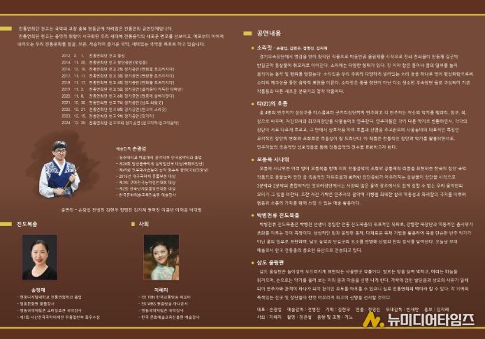 진도북춤은 송정례 씨가 맡아 전통의 품격을 더하고, 사회는 지혜리 씨가 맡아 공연의 흐름을 자연스럽게 이끈다.