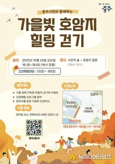 정상구 충주시보건소장은 “호암지는 충주시민이 가장 사랑하는 산책 명소로, 가을빛 풍경 속에서 건강과 즐거움을 동시에 느낄 수 있는 소중한 시간이 될 것”이라며 “많은 시민들이 가족, 이웃과 함께 참여해 일상 속 건강한 변화를 경험하시길 바란다”고 전했다.