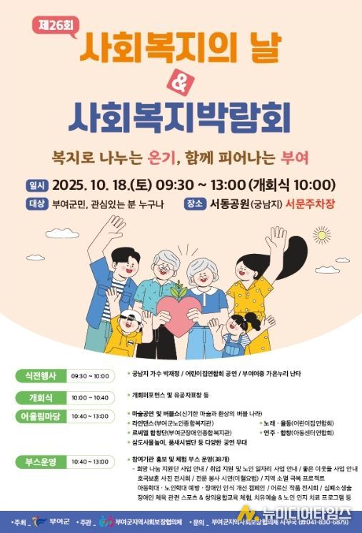 부여군은 오는 10월 18일 서동공원 서문주차장에서 ‘제26회 사회복지의 날 및 사회복지박람회’를 개최한다고 밝혔다.