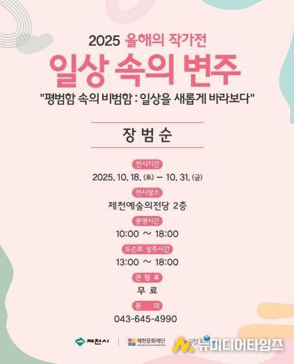 '올해의 작가전' 주제는 일상 속의 변주 ‘평범함 속의 비범함: 일상을 새롭게 바라보다’로 장범순 작가는 일상의 소재를 유머러스하고 해학적으로 표현한 작품 총 16점을 제천예술의전당 2층 전시 공간에 전시한다.
