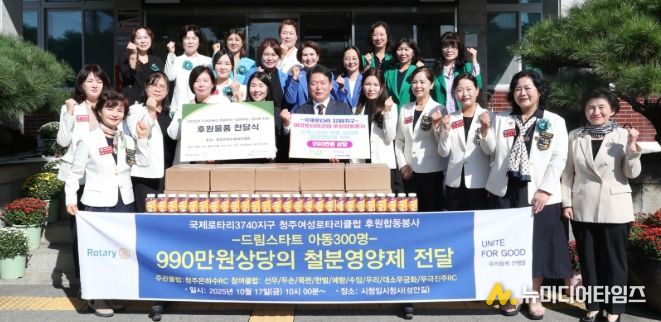 청주시 국제로타리3740지구 소속 9개 여성로타리클럽은 17일 청주시청을 찾아 성장기인 취약계층 아동(드림스타트)을 위해 영양제를 기탁했다.