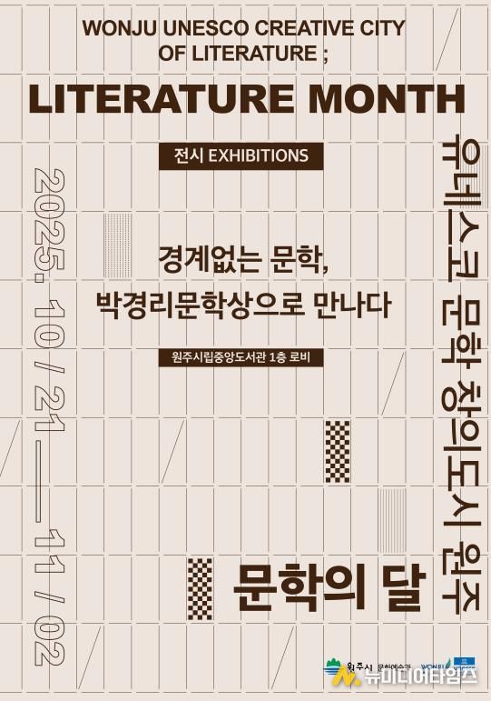 원주시는 10월 20일부터 11월 2일까지 시립중앙도서관 1층 로비에서 2025 원주 문학의 달 기념행사 일환으로, ‘경계없는 문학, 박경리문학상으로 만나다’ 전시를 진행한다.