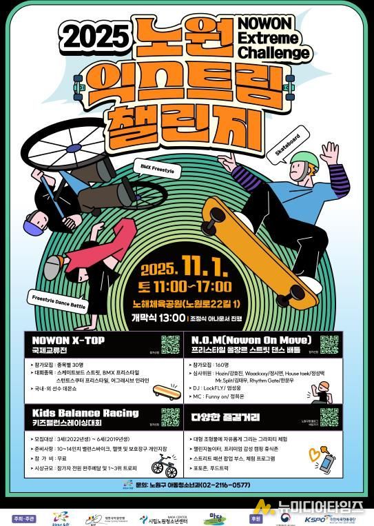 서울 노원구가 다음 달 1일 노해체육공원에서 '2025 노원 익스트림 챌린지(NOWON Extreme Challenge)'를 개최한다고 밝혔다.