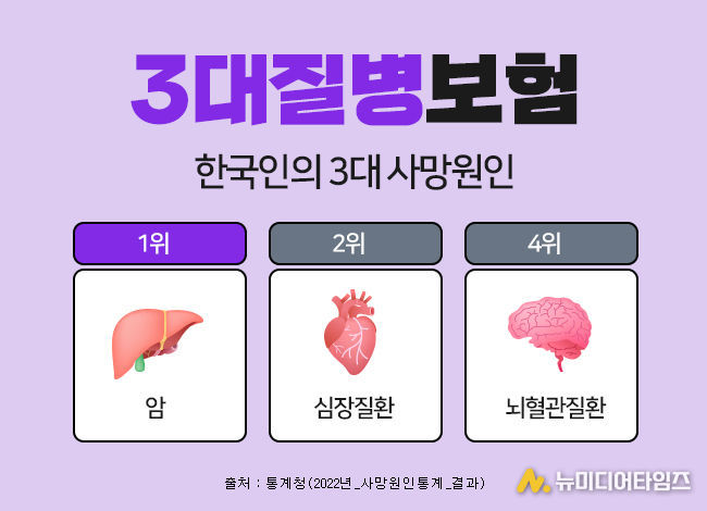 3대질병으로 일컬어지는 암, 뇌혈관질환, 심혈관질환은 한국인의 주요 사망원인에서 상위를 차지하고 있으며, 이에 대한 진단비를 집중적으로 보장해 주는 보험상품을 3대질병진단비 보험이라 할 수 있다.
