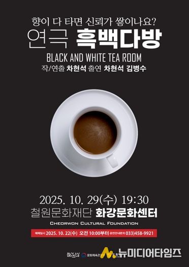 철원문화재단은 오는 10월 29일 저녁 7시 30분, 화강문화센터에서 ‘10월 문화가 있는 날’을 맞이하여 연극 '흑백다방'을 선보인다.