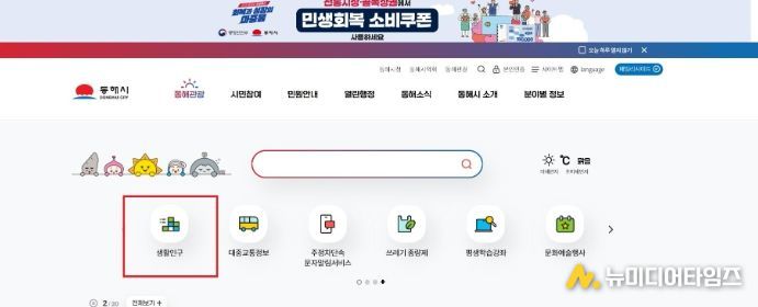동해시민 누구나 동해시 대표 홈페이지 생활인구 탭에서 손쉽게 이용할 수 있다.