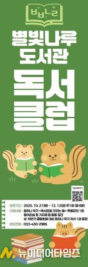 홍천군은 별빛나루도서관에서 10월 21일부터 12월 11일까지 ‘2025년 하반기 독서클럽’을 운영한다고 밝혔다.