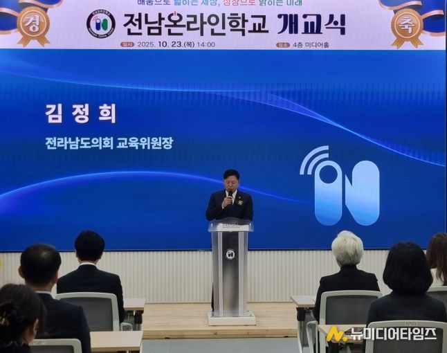 이날 김정희 위원장은 축사를 통해 “전남온라인학교는 단순한 온라인 학습공간이 아니라, 전남의 고등학생들이 시공간의 제약 없이 동일한 교육 기회를 누릴 수 있도록 만든 혁신의 결실”이라며 “이는 교육의 지역적 한계를 넘어 진정한 ‘배움의 평등’을 실천하는 전남교육의 새로운 도전”이라고 말했다.